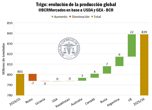 Sin embargo, el contexto internacional presenta desafíos. Siete de los ocho principales exportadores mundiales aumentaron su producción este año. Rusia habría cosechado 88,8 millones de toneladas, Australia cerca de 37 millones, y la Unión Europea 144 millones, recuperándose de un ciclo previo difícil. Esta oferta global récord mantiene una presión a la baja sobre los precios en todo el mundo.