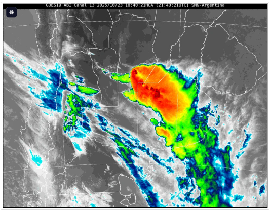 Según el informe oficial, el área será afectada por tormentas de variada intensidad, algunas localmente fuertes, acompañadas por abundante caída de agua en cortos períodos, actividad eléctrica frecuente y ocasional granizo. Se estiman valores de precipitación acumulada entre 30 y 50 milímetros.