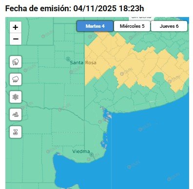 El Servicio Meteorológico Nacional renovó esta noche el alerta amarillo que había emitido en la mañana del martes 4 de noviembre. El aviso rige para Olavarría y la región central bonaerense, donde ya se registraron lluvias en las horas previas.