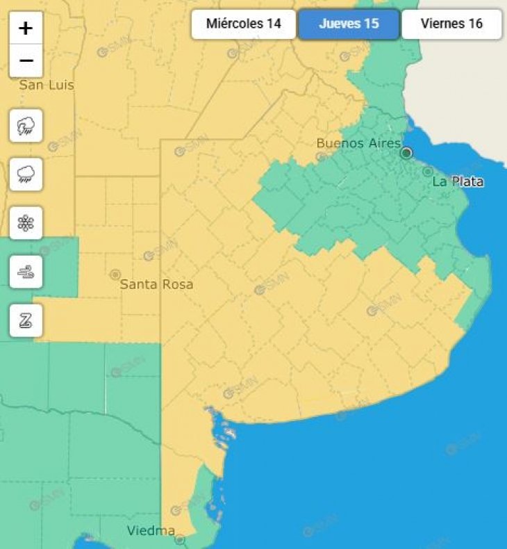 El Servicio Meteorológico Nacional (SMN) emitió un alerta amarillo por tormentas que regirá durante la madrugada de este jueves 15 de enero y abarcará a gran parte de la provincia de Buenos Aires.
