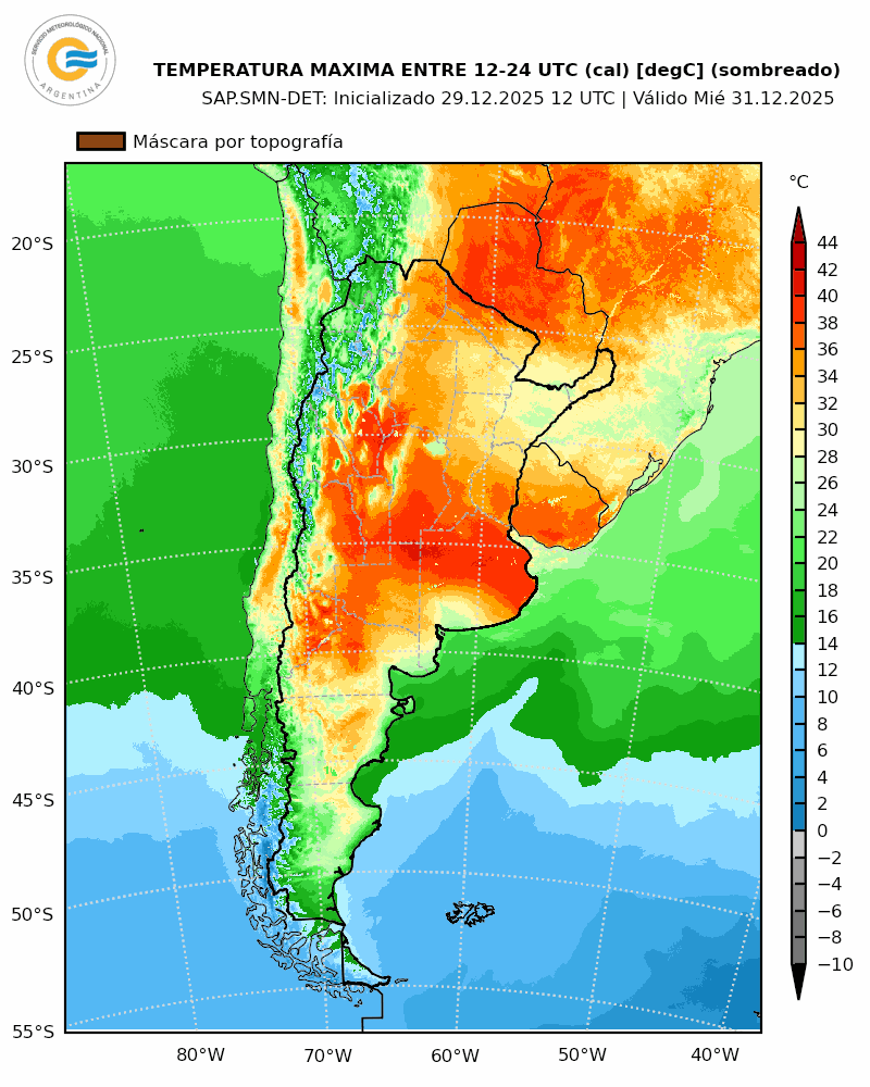 Entre el 29 de diciembre y el 3 de enero, las condiciones meteorológicas se caracterizarán por temperaturas muy altas en las provincias de Buenos Aires, incluido el AMBA, La Pampa, Córdoba, San Luis, Mendoza, el este de San Juan y La Rioja, el norte de Río Negro y Neuquén, y el centro y sur de Santa Fe y Entre Ríos.