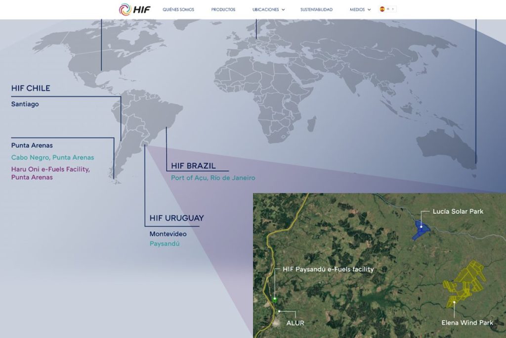 En su sitio oficial, HIF Global muestra su única planta operativa en funcionamiento. Está ubicada en Punta Arenas, Chile, y produce e-Combustibles con energía proveniente de parques eólicos. También informa que tiene cinco proyectos en etapa de desarrollo avanzado, uno de ellos es el de Paysandú, al que presenta como “el mayor de Sudamérica” y acompaña con un dato: creará tres mil puestos de trabajo durante la construcción y unos 300 empleos directos durante las operaciones.