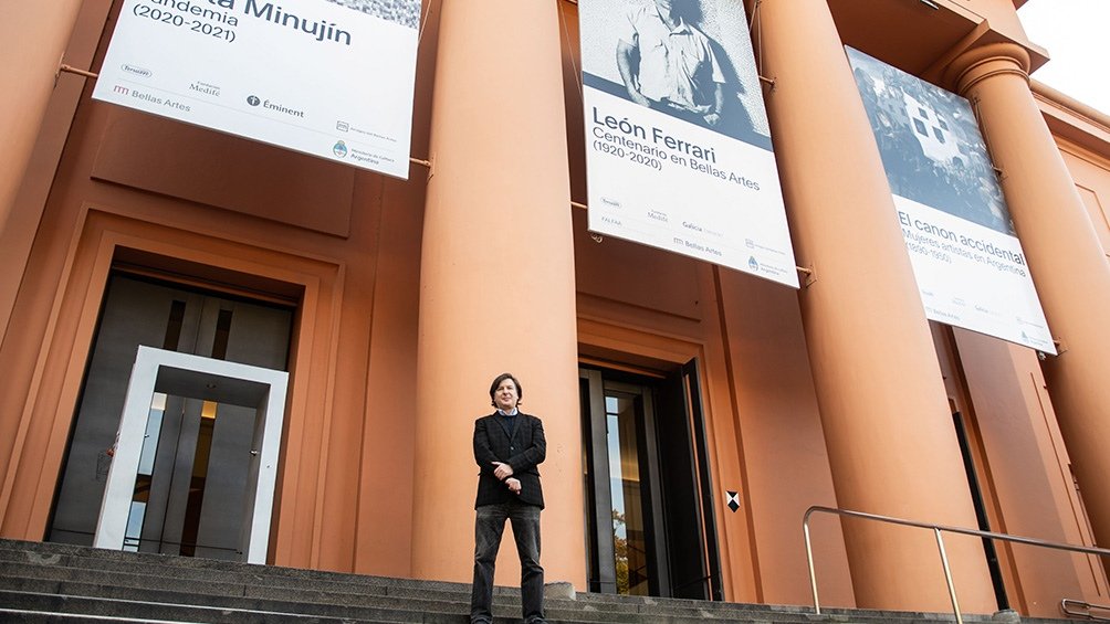 Nacido en La Plata en 1964, el actual director tiene un multifacético perfil artístico que además de su formación como arquitecto incluye tareas como guionista de cine y curador de arte contemporáneo argentino. Es autor de los guiones de los largometrajes «El artista» y «El hombre de al lado», entre otros, y está al frente del Bellas Artes desde 2015, cuando llegó también por concurso para cumplir un mandato de cuatro años que se prolongó por la pandemia.