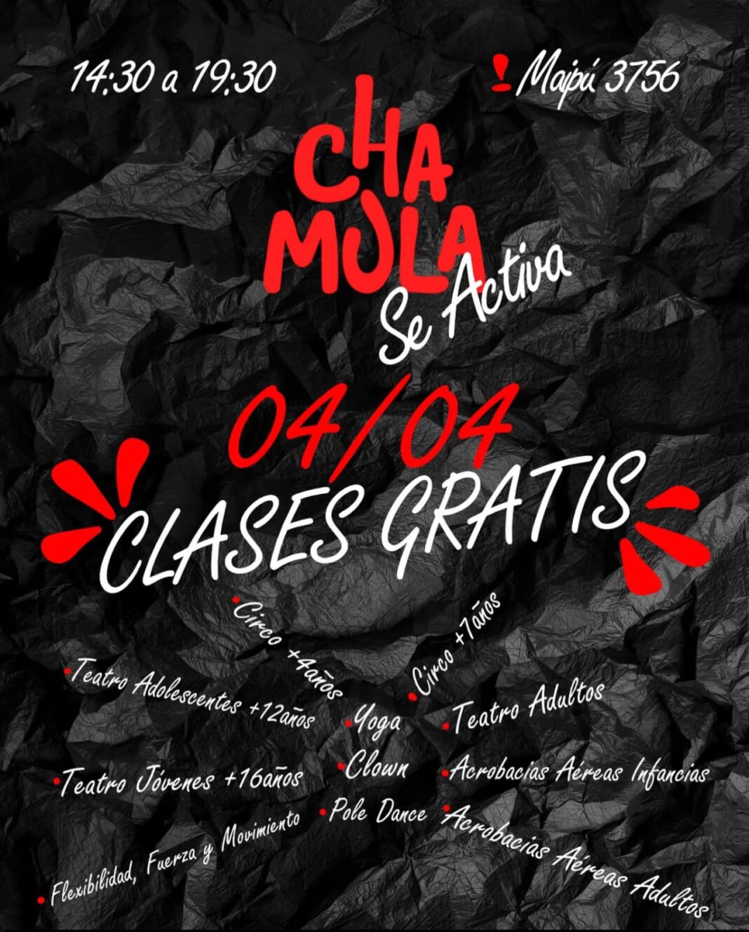 En el marco del inicio de su ciclo anual de actividades, el espacio cultural Chamula llevará adelante un festival de clases abiertas y gratuitas destinado a toda la comunidad. La propuesta se desarrollará el viernes 4 de abril y permitirá a vecinos y vecinas conocer de cerca la разнообразada oferta de talleres que se dictarán durante el año.