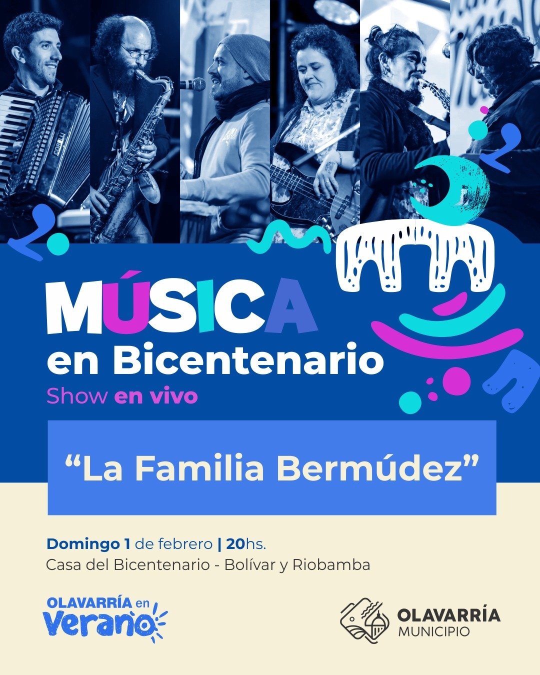 El programa municipal “Olavarría en verano” se prepara para despedir a una de sus propuestas más exitosas. Este domingo 1 de febrero, el ciclo “Música en Bicentenario” llegará a su fin con una noche que promete baile y alegría a la ribera del arroyo Tapalqué, con el cierre estelar de la reconocida banda local La Familia Bermúdez.