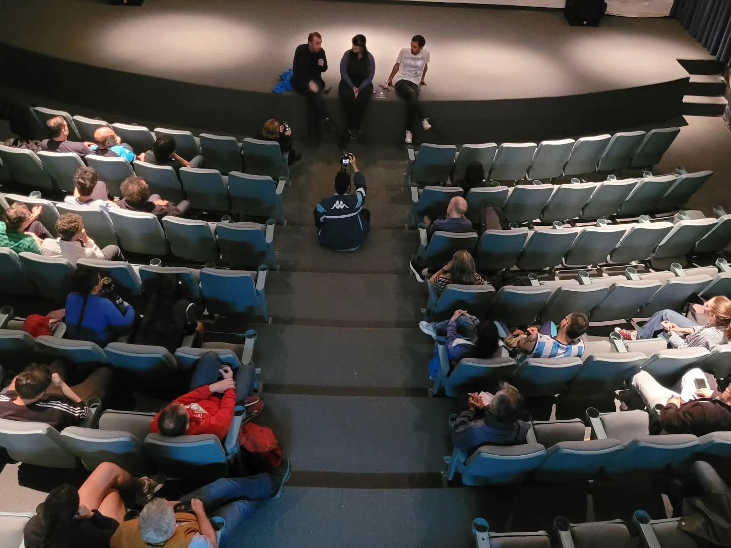 La actividad contó con la presencia del director, quien relató el proceso de investigación que lo llevó incluso a convertirse en querellante en la causa que busca esclarecer aquellos crímenes.