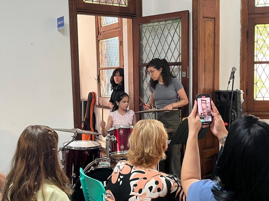 En una tarde llena de música, la muestra convocó a familiares, amigos y aficionados del arte a disfrutar de los avances aprendidos por los alumnos y alumnas de batería, canto, piano, guitarra, violín, bajo, entre otros instrumentos de cuerda y viento.
