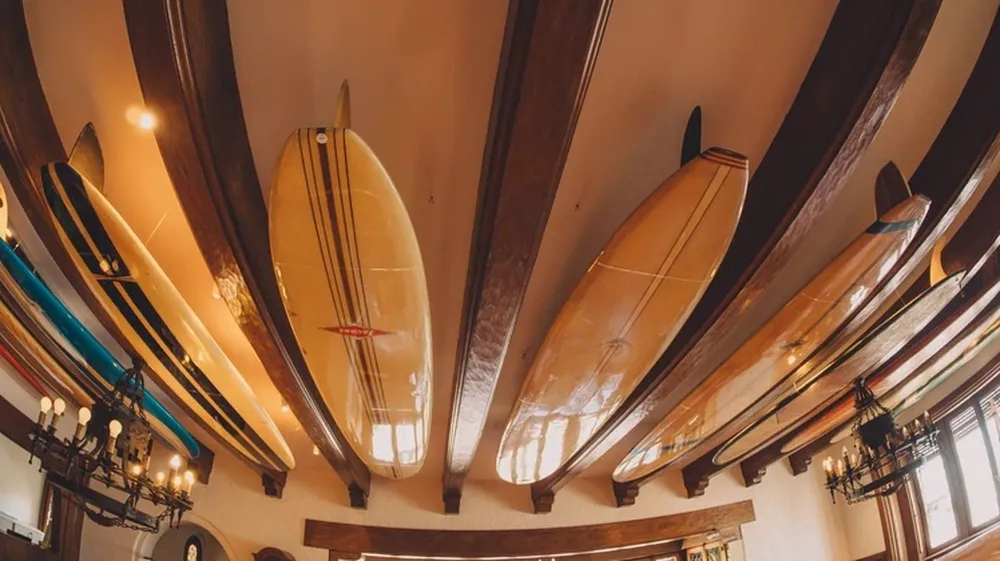 Al ingresar, el visitante se encuentra con un diálogo constante entre el patrimonio edilicio y la cultura del surf. Decenas de tablas históricas recorren la evolución del deporte: desde piezas de madera maciza provenientes de Hawaii, datadas a comienzos del siglo XX, hasta modelos contemporáneos utilizados por figuras consagradas. Entre ellas, se destacan tablas pertenecientes a surfistas emblemáticos de las últimas décadas y la que utilizó Kauli Vaast, campeón olímpico en París 2024. También hay un retrato de Duke Kahanamoku, considerado el impulsor del surf moderno.