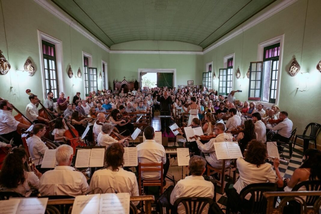 Gala Sinfónica: La Orquesta Sinfónica Municipal se presentó en la Capilla Santa Isabel de Sierra Chica. El lugar lució colmado de vecinos que se emocionaron con el despliegue musical en un marco arquitectónico único.