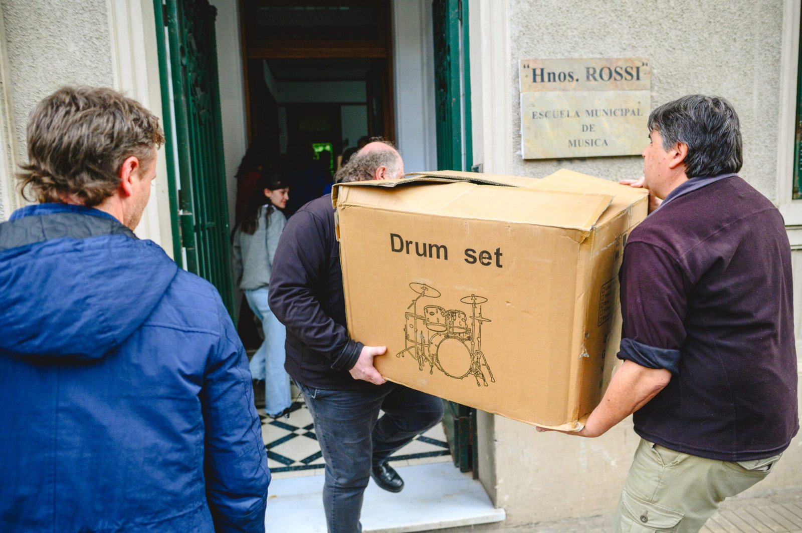 La entrega incluyó dos violines 3/4, dos violines 4/4, dos ukeleles tenor, cuatro guitarras criollas, dos guitarras eléctricas (una para personas zurdas), un bajo y un bajo para zurdos, una batería completa y un piano eléctrico de 88 teclas.