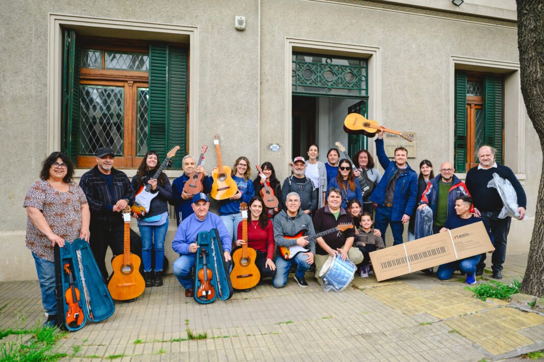 La entrega incluyó dos violines 3/4, dos violines 4/4, dos ukeleles tenor, cuatro guitarras criollas, dos guitarras eléctricas (una para personas zurdas), un bajo y un bajo para zurdos, una batería completa y un piano eléctrico de 88 teclas.