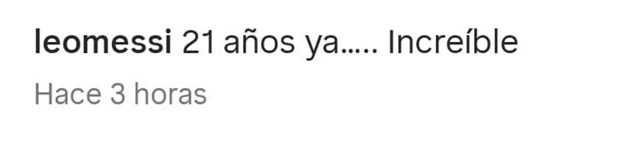 “21 años ya… Increíble”, escribió Messi en la descripción de su publicación en redes sociales, acompañando sus palabras con una imagen que despertó emoción entre millones de seguidores. La frase, simple y directa, condensa todo el peso de una trayectoria irrepetible: desde aquel adolescente que debutó con la camiseta número 30 hasta el ídolo que levantó trofeos en todos los rincones del planeta.