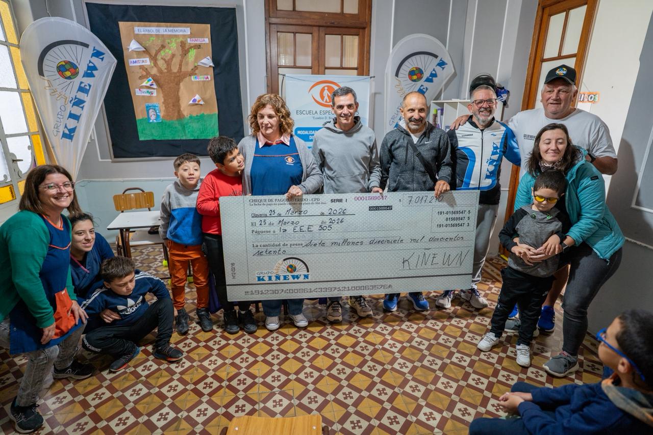 En la mañana de este lunes se realizó la entrega simbólica del cheque con lo recaudado en la última edición de la carrera solidaria Kiñew, que tuvo por segundo año consecutivo como beneficiaria a la Escuela Especial Nº 505 “Eusebio D. Bouciguez” de Olavarría.