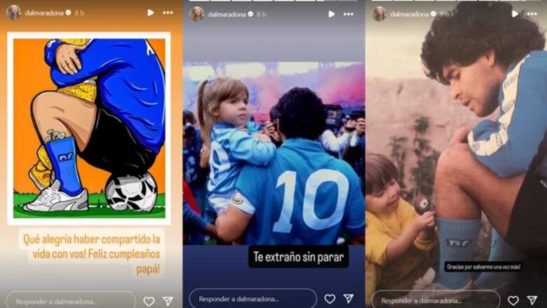 Sus hijas Dalma y Gianinna Maradona fueron protagonistas de algunos de los posteos más emotivos.