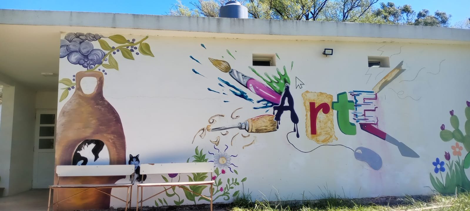 Un hermoso mural en el edificio propio, que fue ideado y realizado por un grupo de alumnos y alumnas de la institución.