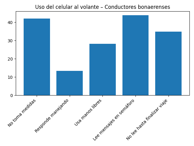 Una encuesta de la Defensoría del Pueblo bonaerense reveló que el 42 % de los conductores no toma ninguna medida para evitar usar el celular mientras maneja, aun cuando casi la totalidad (90 %) reconoce que esta práctica pone en peligro a otras personas en la calle.