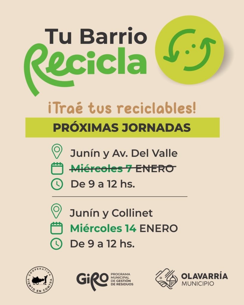 Durante el mes de enero continúan las jornadas del Programa Municipal “Tu Barrio Recicla” por distintos puntos de la ciudad, que son impulsadas por la Coordinación de Ambiente de la Secretaría de Desarrollo Económico y Productivo, en articulación con las promotoras ambientales de la Cooperativa Viento en Contra.