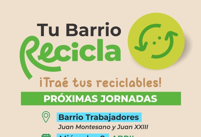 Mientras que la segunda fecha está prevista para el jueves 23 de abril en barrio CECO II, en Av. Sarmiento entre Junín y Guisasola. En caso de lluvia, la jornada se reprograma para el viernes 24. En este caso es la primera vez que se realiza una jornada de “Tu Barrio Recicla” en este sector de la ciudad.