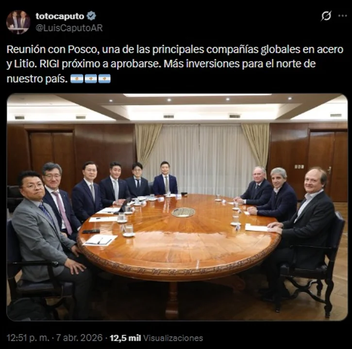 El Gobierno busca avanzar con llegada de inversiones al país y el ministro de Economía, Luis Caputo, se reunió con autoridades de Posco “una de las principales compañías globales en acero y litio”, que desembarcará en la región del noroeste argentino bajo el RIGI (Régimen de Incentivo para Grandes Inversiones).