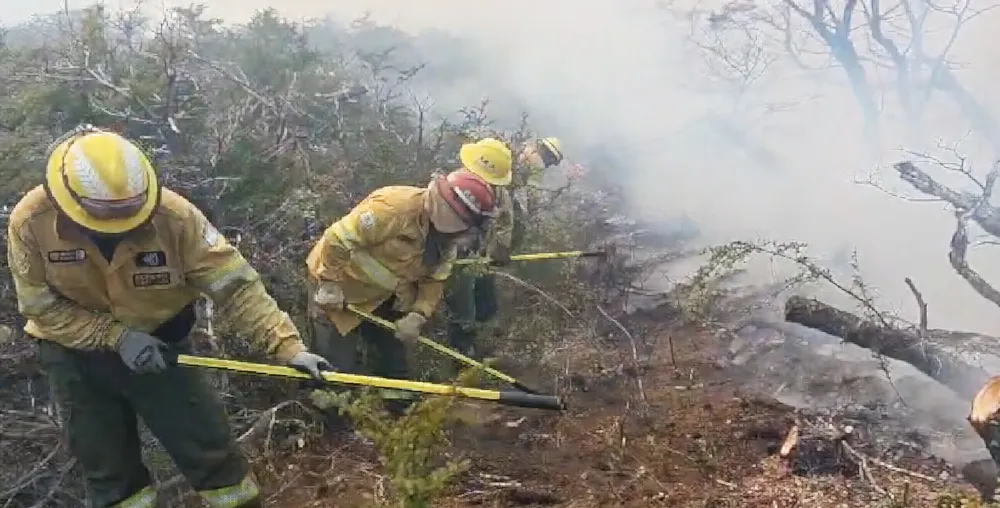 El contingente bonaerense tiene como objetivo prioritario el incendio de Puerto Patriada y el sector de Laguna Villarino, donde el comportamiento del fuego no ha podido controlarse.