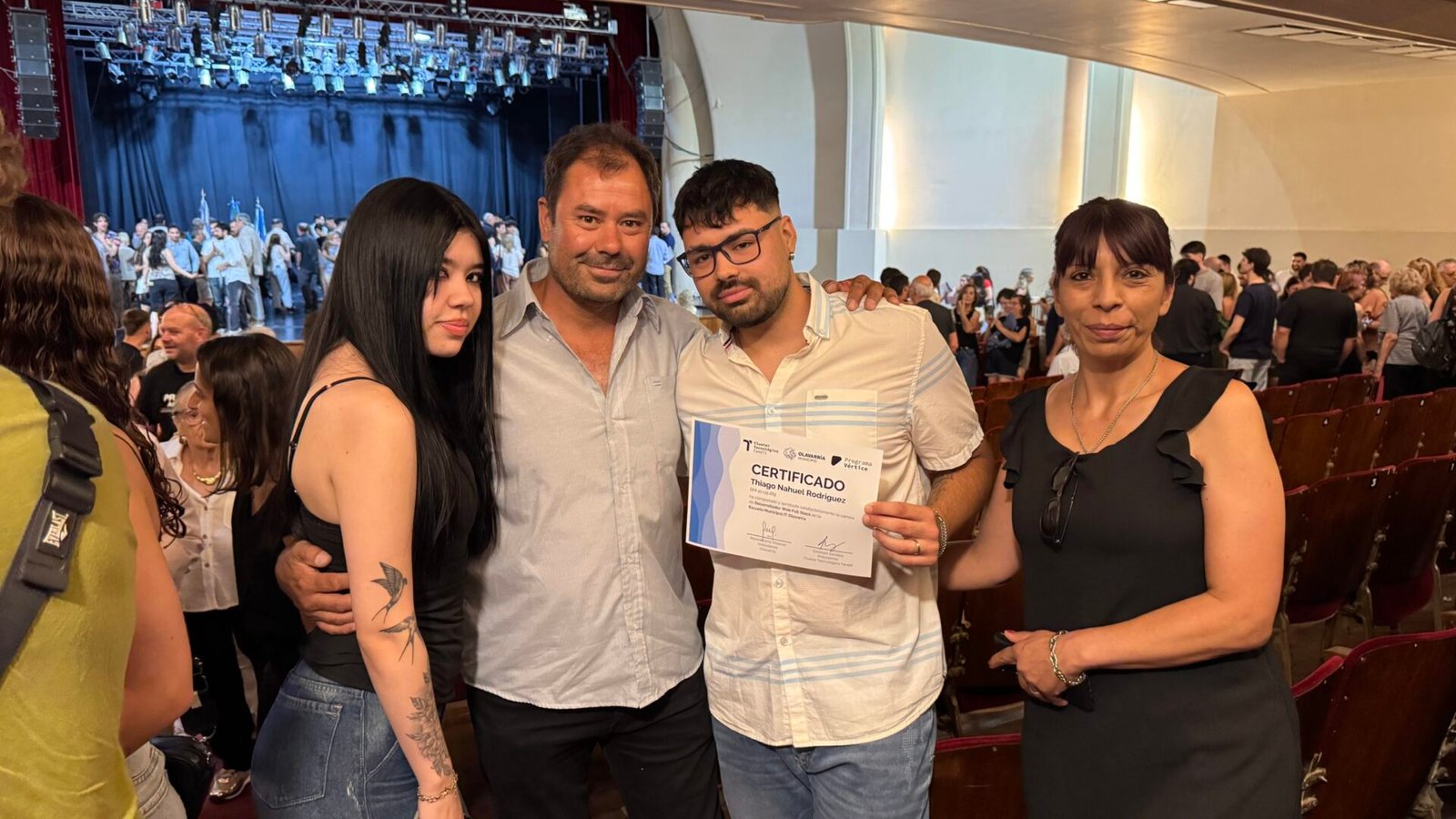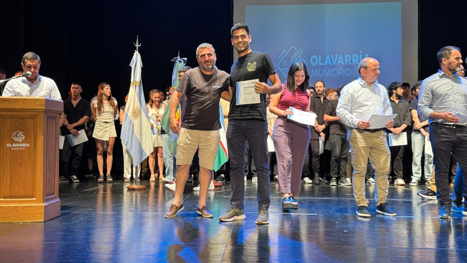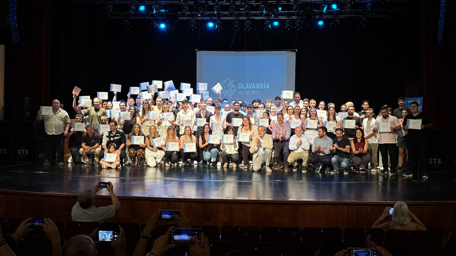 En total, 98 personas recibieron sus certificados de egreso, en un acto que culminó con una foto grupal sobre el escenario, acompañada por el aplauso de familiares y amigos.