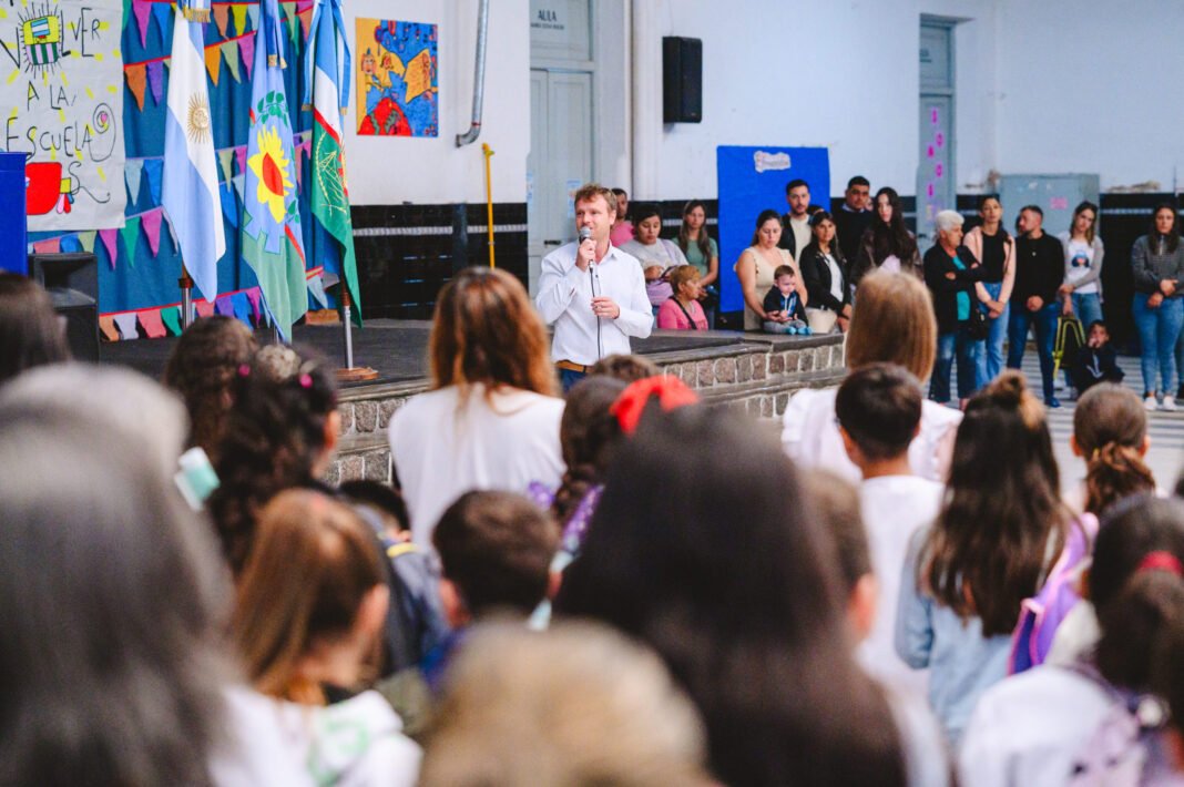 Al hacer uso de la palabra, el jefe comunal subrayó la importancia del vínculo entre los estudiantes de primer grado y quienes terminan la primaria, quienes recibieron a los más chicos con un «pasillo de honor».