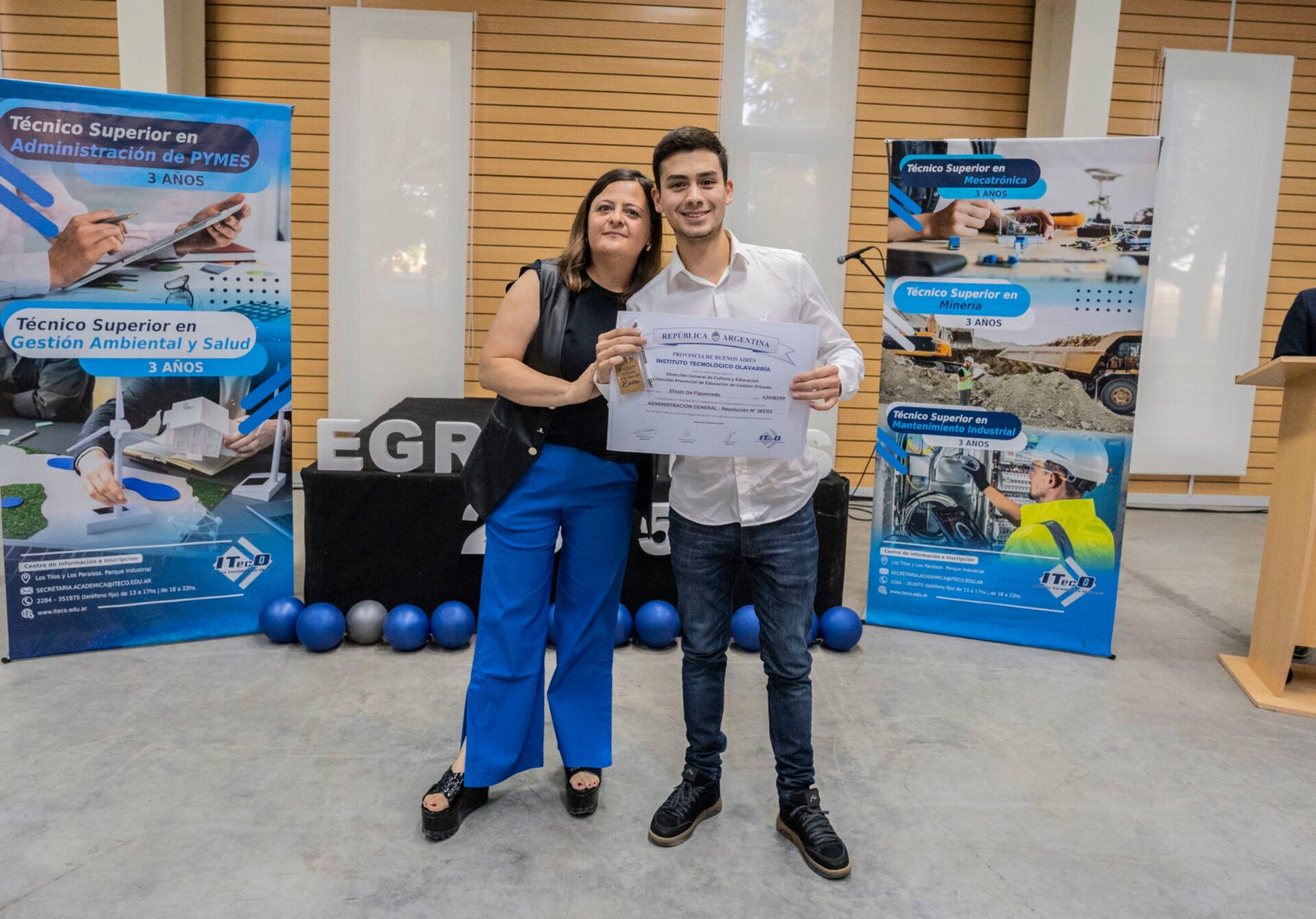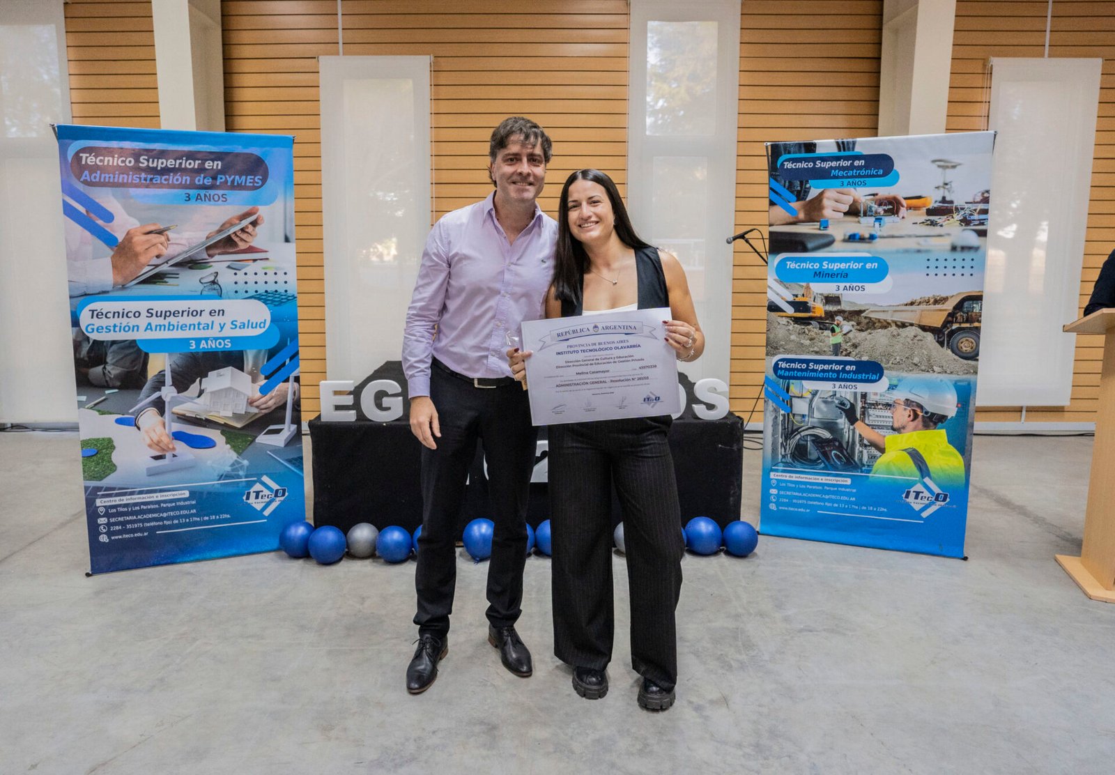 Las palabras de bienvenida y reconocimiento estuvieron a cargo de Diego Cunioli y Romina Altafini, quienes destacaron el valor de la formación técnica superior como herramienta clave para la inserción laboral y el desarrollo productivo del país.