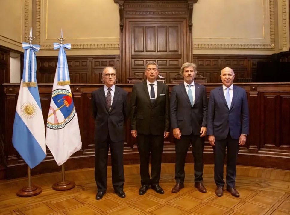 El año pasado la Corte Suprema homenajeó a los jueces del Juicio a las Juntas de 1985, que en la llamada “Causa 13” condenaron a los principales responsables del terrorismo de Estado entre 1976 y 1983. En esa oportunidad, el presidente del tribunal, Horacio Rosatti, subrayó la realización de un “auténtico juicio justo” en un contexto “complejo”; el vicepresidente Carlos Rosenkrantz lo definió como una respuesta “jurídicamente impecable a crímenes atroces”; y el juez Ricardo Lorenzetti afirmó que la política de memoria y justicia forma parte del contrato social de los argentinos. (NA)