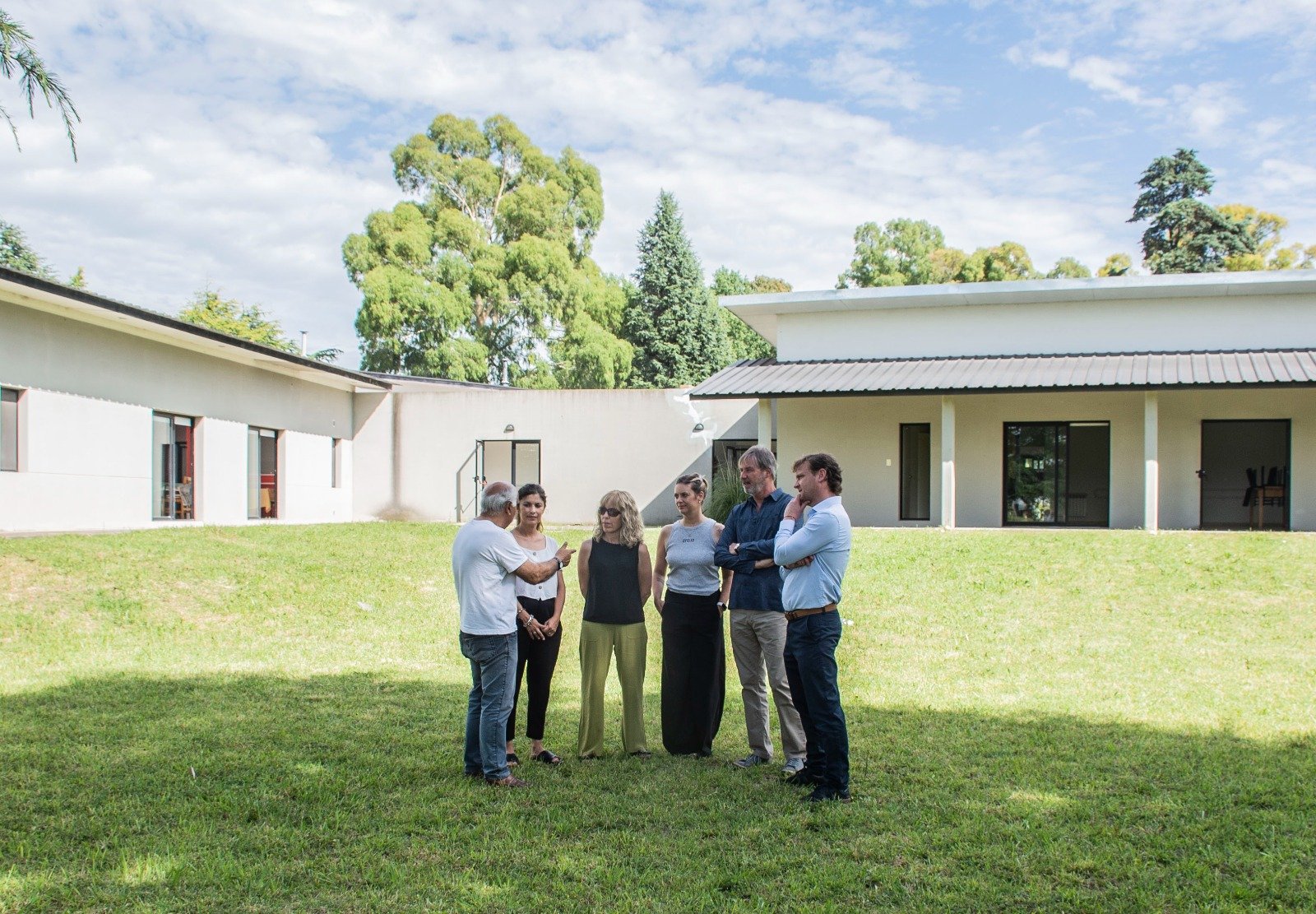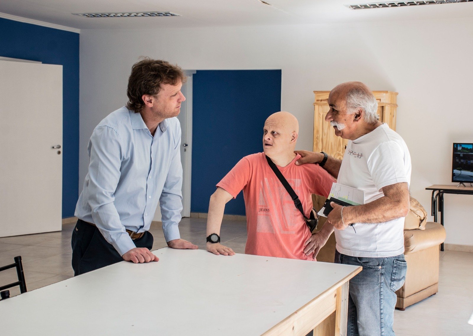 Durante la visita, Wesner compartió parte de la rutina matutina de los residentes, quienes iniciaban sus actividades diarias antes de trasladarse a los talleres en la sede de Talleres Protegidos. El intendente estuvo acompañado por la secretaria de Desarrollo de la Comunidad, Laura Gamberini; la subsecretaria de Desarrollo Social, María José Maidana; y la directora de Discapacidad, Laura Arbillaga.