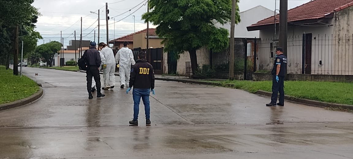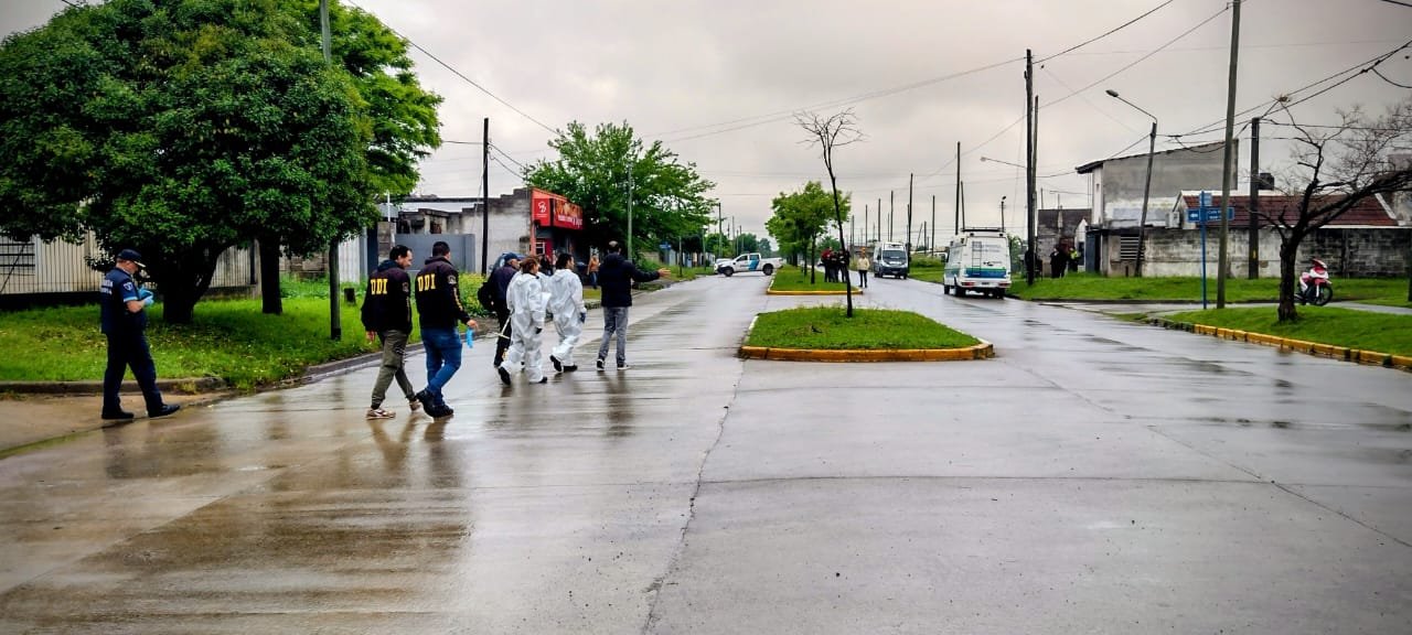 Una de las labores que llevan a cabo por estos minutos los agentes policiales es recorrer viviendas del barrio para solicitar imágenes de las cámaras de seguridad particulares que funcionan en un radio cercano al lugar del homicidio.