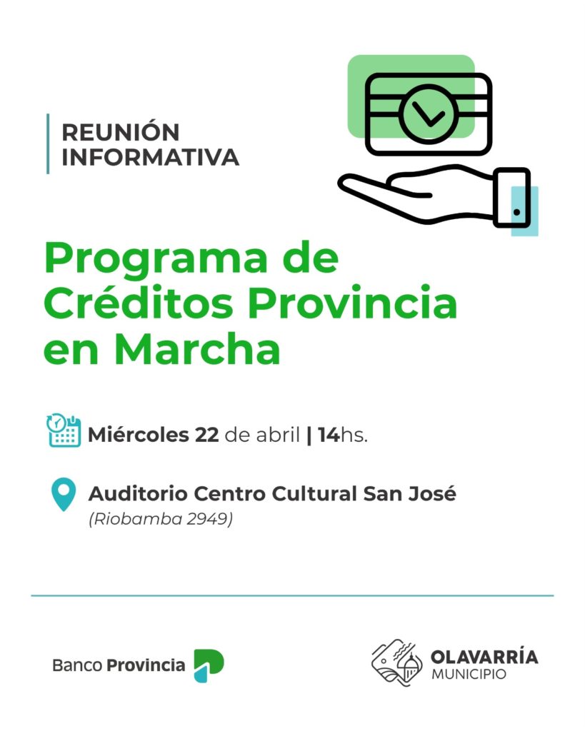 El próximo miércoles 22 de abril, el auditorio del Centro Cultural Municipal San José será sede de una reunión informativa estratégica para el sector pyme e industrial del Partido. El encuentro, que comenzará a las 14:00 horas, tiene como objetivo asesorar a los emprendedores sobre cómo acceder a créditos con condiciones preferenciales.