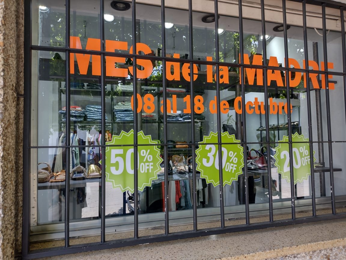 Ofertas, promociones y rebajas no faltan. Vidrieras y carteles instalados en las entradas de los negocios invitan a llevarse el regalo para mamá con muchos descuentos.