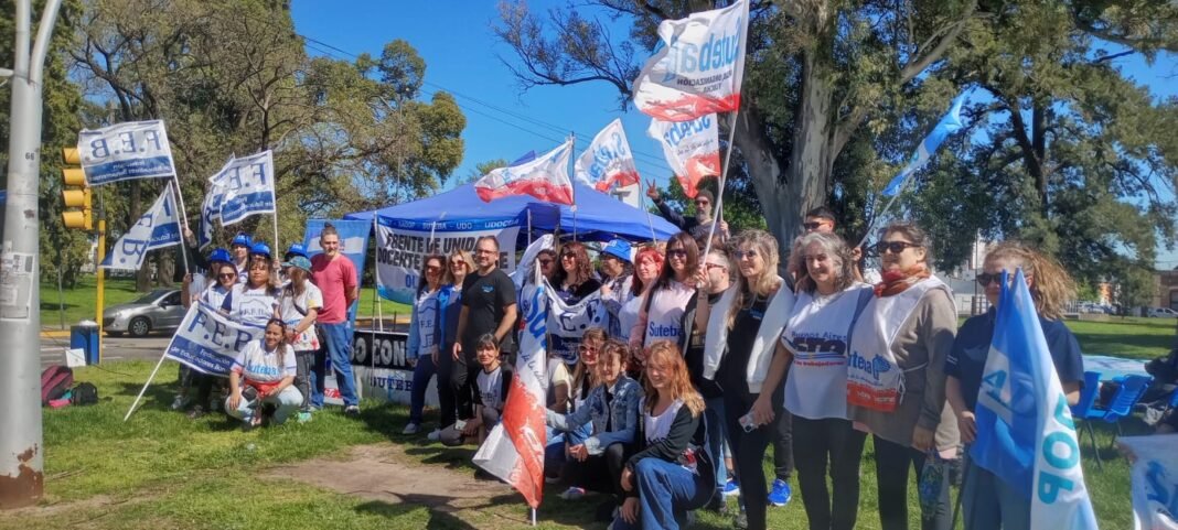 Allí se desarrolla este miércoles la jornada de protesta en el marco de la Jornada Nacional en Defensa de la Educación Pública y el Derecho Social a la Educación.