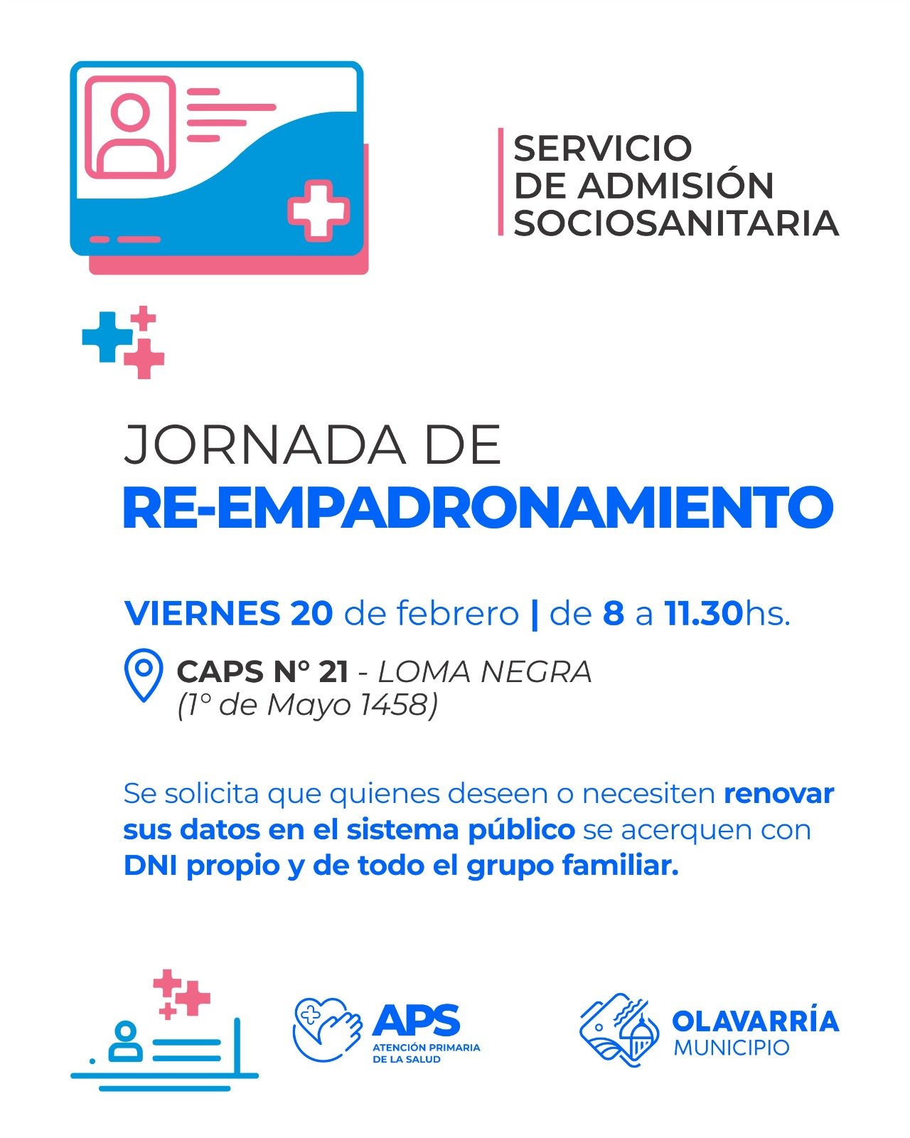 El operativo es impulsado por el Servicio de Admisión Socio-sanitaria y la Subsecretaría de Atención Primaria de la Salud para actualizar datos en el sistema público. Esta semana se realizó una jornada en Sierra Chica y ya hay nuevas fechas confirmadas.