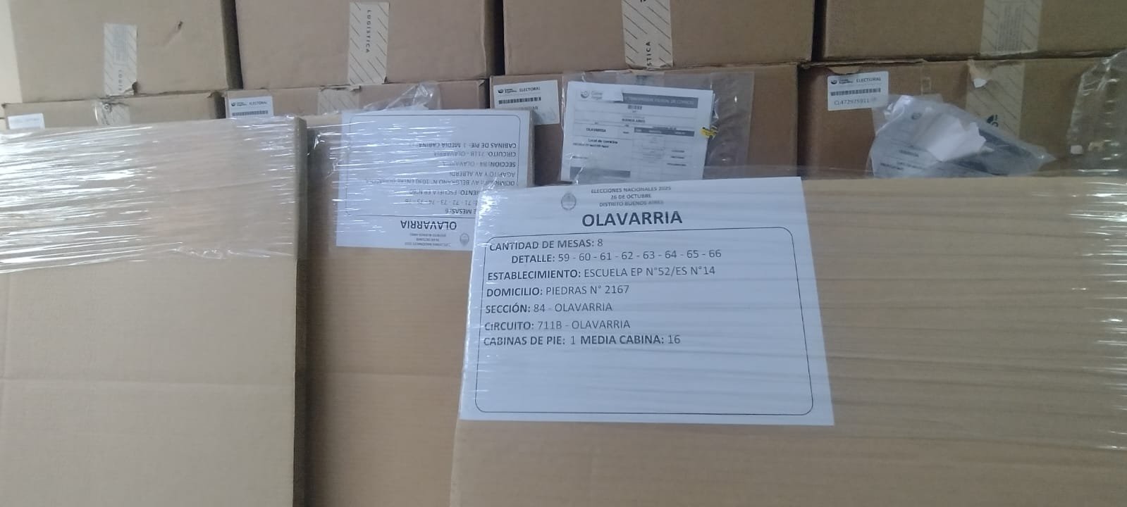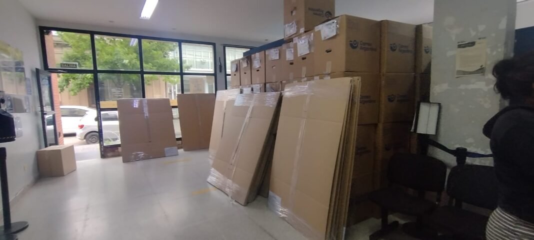 Pero sí salta a la vista de cualquier cliente que en la sede se encuentran apiladas las “cabinas” que serán distribuidas durante el fin de semana a distintas escuelas y establecimientos del Partido, en las que las y los olavarrienses votaremos el próximo domingo 26 de octubre.