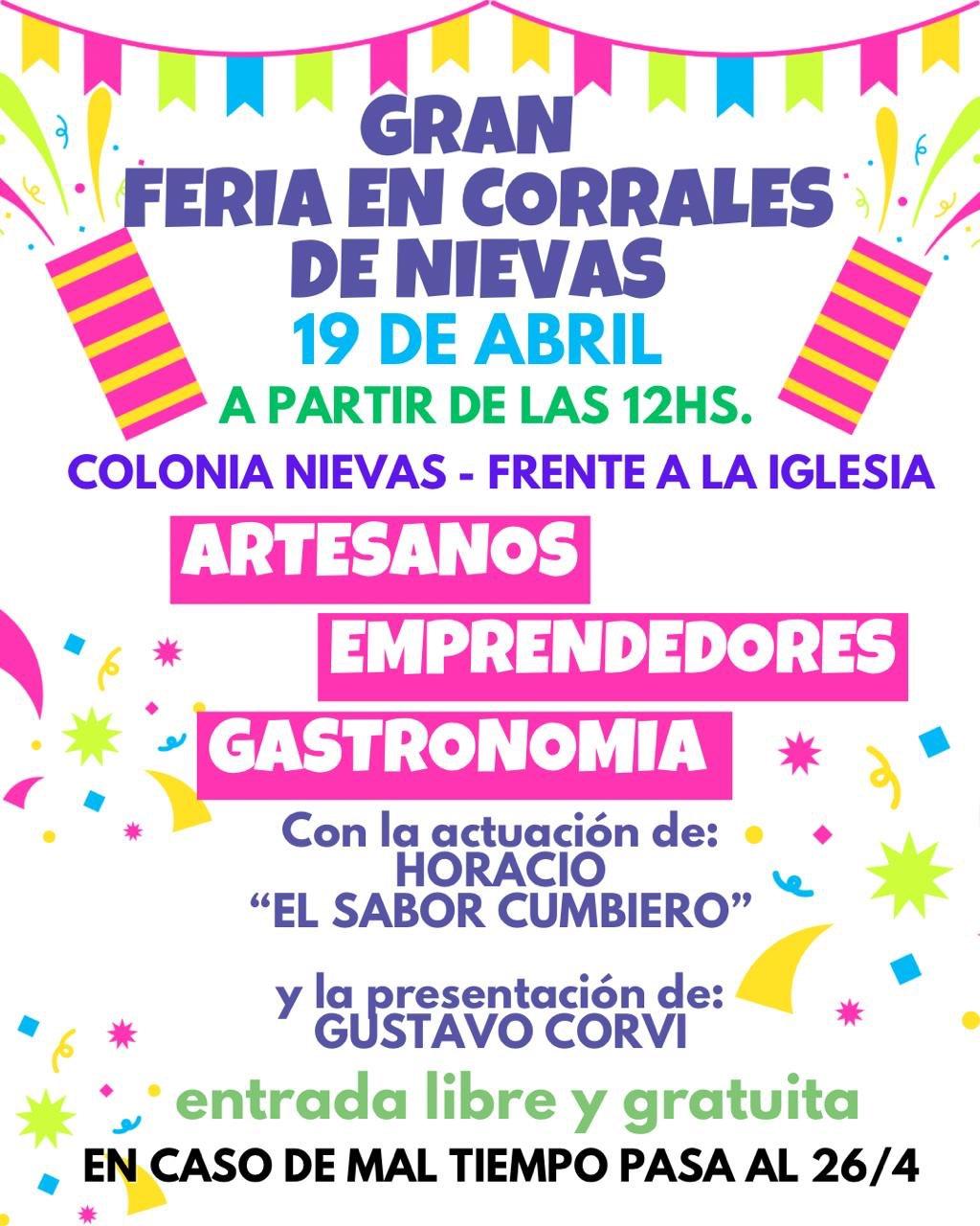 Feria en Colonia Nievas: artesanos, gastronomía y show musical el 19 de abril