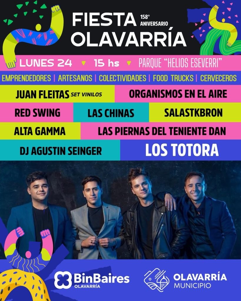 Tal como se informó días atrás, el tradicional y masivo evento que convoca a multitudes, no sólo del Partido de Olavarría sino de toda la región tendrá un show de cierre a puro baile y disfrute con la presentación de “Los Totora”, la banda platense que se ha consolidado como una de las agrupaciones de cumbia pop más reconocidas de nuestro país, con una trayectoria y canciones que son parte del repertorio popular nacional. Además, también se contará con la presentación de Salastkbron.