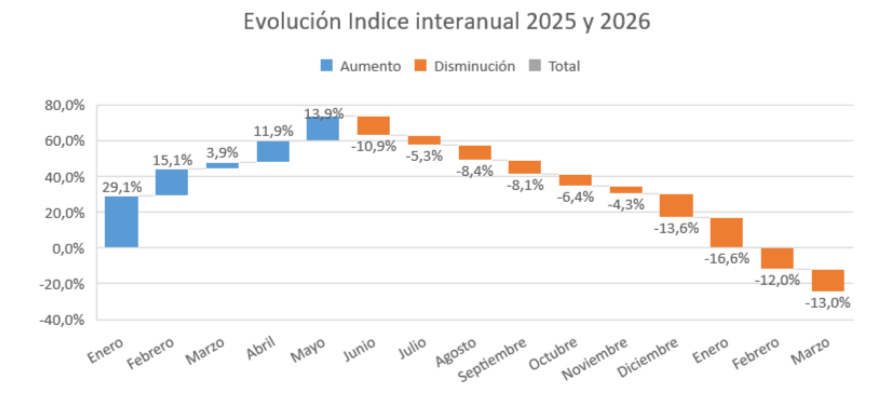 Por su parte, el sector de transporte se vio particularmente afectado por el aumento del 17% en el precio de los combustibles durante el mes. En paralelo, la venta de combustibles cayó un 32% respecto a 2023 y un 17% frente a marzo de 2025, reflejando el menor nivel de actividad.