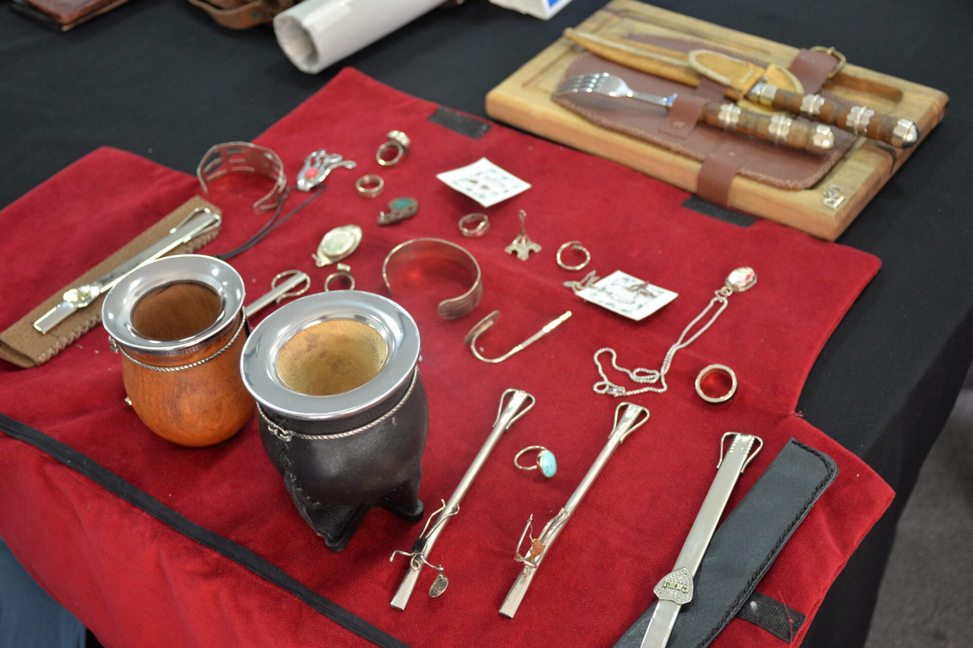 - Mario Fernández (Melquíades Artesanías): Orfebre especializado en bombillas y mates personalizados, cuchillos encabados en madera y joyería artesanal (anillos, dijes, aros).