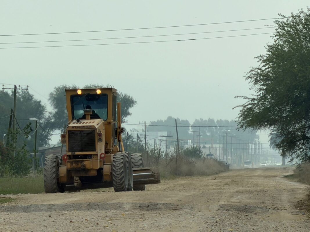 En paralelo, el Municipio avanzó con trabajos de mejoramiento vial en calles internas del barrio Carlos Pellegrini y en la prolongación de la avenida Colón. Las tareas incluyeron nivelación, perfilado y conformado, utilizando equipamiento y recursos propios.