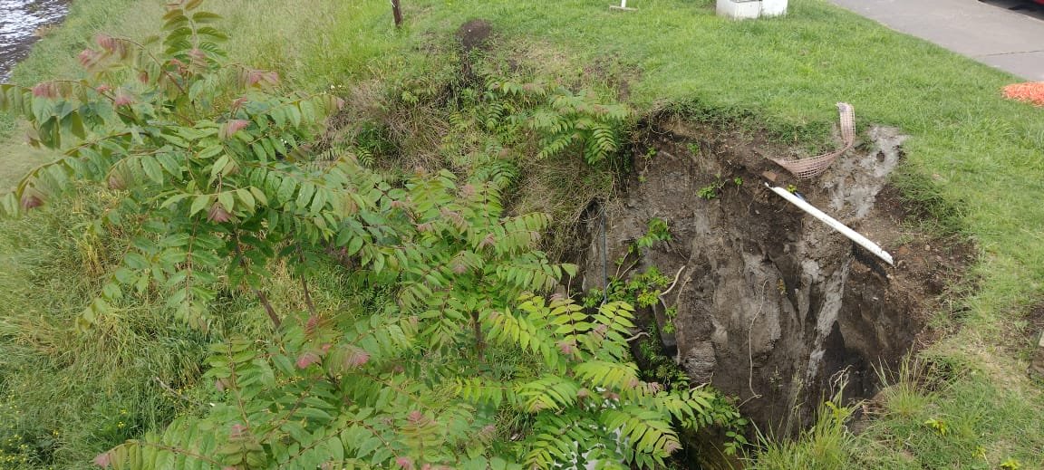 «Precisamente se trabaja sobre calle Capitán de Corbeta Diego M. Wagner, teniendo en cuenta que el mal funcionamiento del conducto fue socavando lentamente la base de fundición del puente.