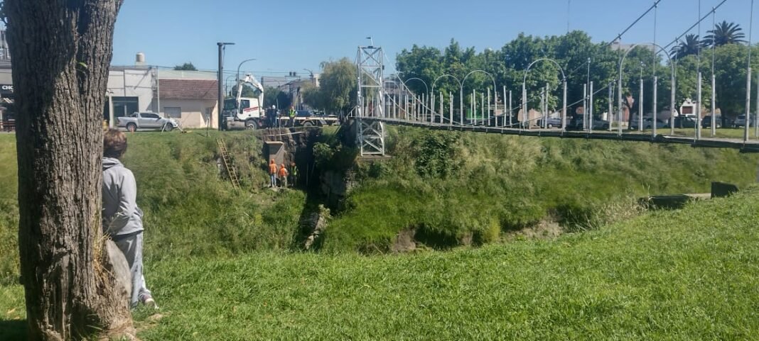En este caso, la mañana del miércoles encontró movimiento de hombres y maquinarias a la altura del puente colgante de la calle General Paz.