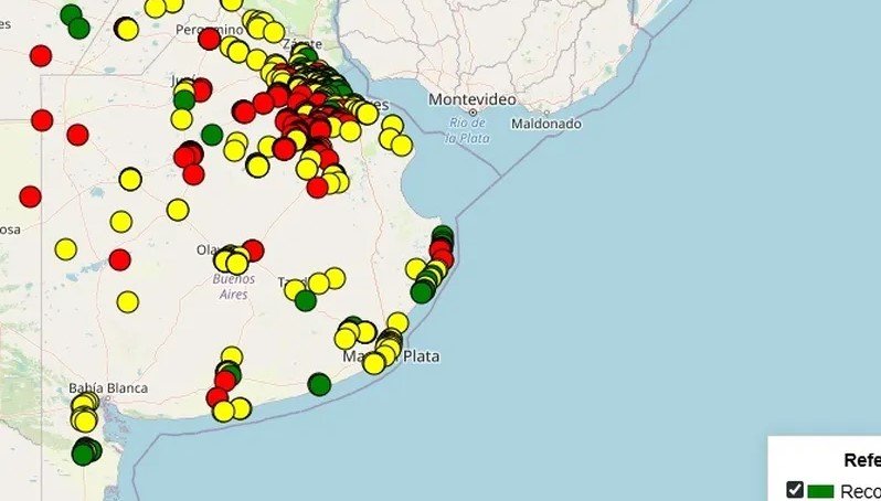 En tanto, hay otros pozos que el semáforo marca en amarillo, donde la presencia de arsénico en el agua es entre 10 y 50 partes por billón (ppb), de 0,01 mg/l a 0,05 mg/l. En este caso, aparecen en alerta zonas de Villa Gesell; Mar del Plata; Tres Arroyos; Olavarría, Azul; Villarino, Salliqueló; Bolívar; Junín; San Pedro; Baradero; La Plata y varias comunas del Gran Buenos Aires.