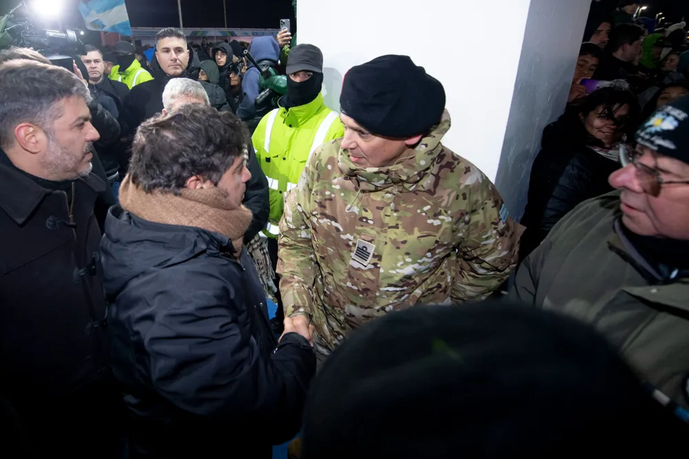 «La industria nacional, la soberanía nacional, también lo que significa para nosotros el canal Magdalena, la defensa de nuestros intereses en todos los foros y también un pueblo que necesita trabajo, tranquilidad y recordar que es lo más importante que tiene que es su identidad y soberanía», dijo el mandatario bonaerense ante la prensa, mientras un coro de personas coreaba «Axel presidente».
