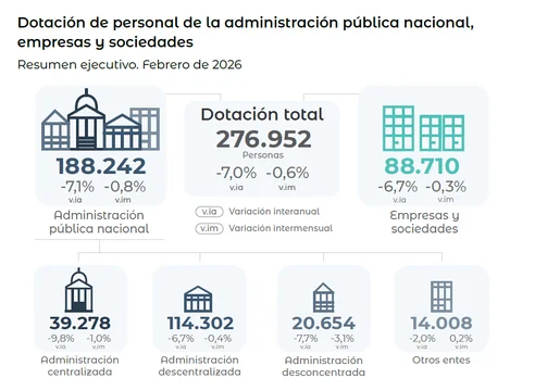 La dotación total de empleados públicos bajó 7% interanual en febrero.