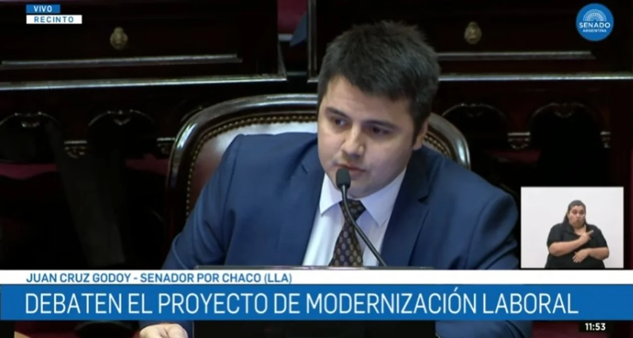 Se trata de Juan Cruz Godoy (31), de Chaco, que ingresó a la Cámara alta tras las elecciones del pasado 26 de octubre. Se trata de uno de los referentes LLA en suelo chaqueño y por el que la Casa Rosada pujó para empujar su candidatura en acuerdo con el gobernador radical, Leandro Zdero.