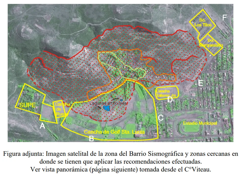 Conforme al escrito “Estudio de Peligrosidad Geológica en el Barrio Sismográfica”, el cual fue elaborado hace 24 años por la Dirección de Geología Ambiental y Aplicada del Instituto de Geología y Recursos Minerales del SEGEMAR, existen tres ejes importantes que las autoridades deben prestar atención y abordar: materiales removidos naturalmente, movimientos de ladera y reuniones con vecinos para que comprendan la problemática.
