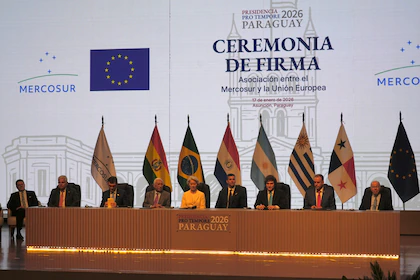 El Mercosur y la Unión Europea firmaron este sábado en Asunción, Paraguay, el acuerdo de asociación birregional más importante de su historia, que conforma un mercado de cerca de 780 millones de personas y representa aproximadamente el 25% del Producto Bruto Interno mundial. La rúbrica final coronó más de 25 años de negociaciones entre ambos bloques.