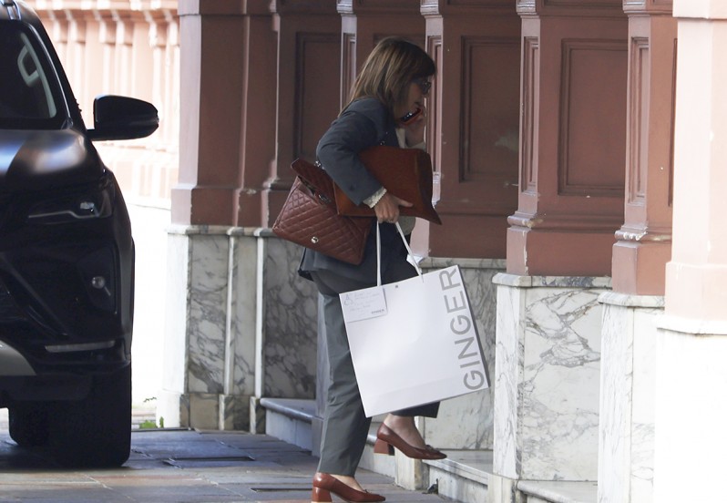 Patricia Bullrich le regaló un amplio bolso de cuero y pide que echen al jefe de Gabinete. Los Granaderos tocaron para ella tres temas de ABBA.