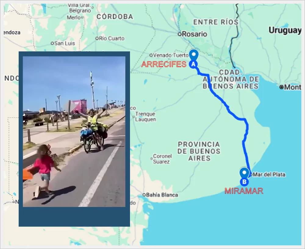 Adolfo Bernardes recorrió 613 kilómetros en bicicleta desde Arrecifes hasta Miramar luego de que su hija superara un cáncer. La travesía duró 14 días y atravesó de norte a sur la provincia de Buenos Aires.
